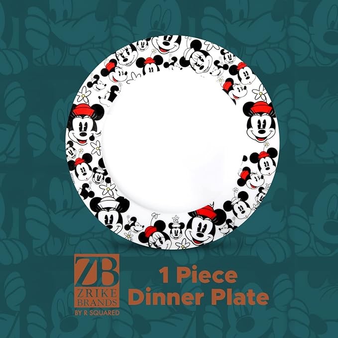Disney Minnie Mouse Ceramic Plate Set by Zrike Brands - Dishwasher & Microwave Safe | Official Disney Licensee (Dinner Plate - 1 Set)