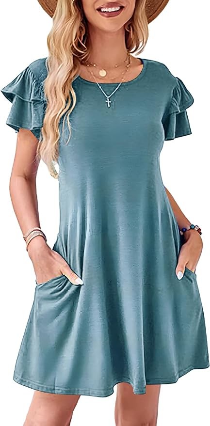 Dokotoo Women 2024 Summer Ruffle Edge Sleeve Dresses Floral Casual Beach Mini Dress with Pocket