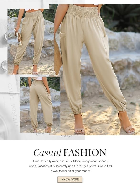 • Smocked High Waisted:Ladies pants are super loose and soft like harem pants! They feature smocked elastic waist and a cuff on the ankle, pair with the graphic tees and sneakers and you're ready to chill with your besties!
