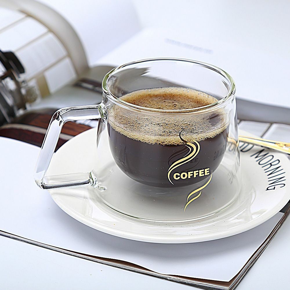 Double Wall Insulated Double Glass Cup with Handle Breakfast Mug Coffee Tea Cup