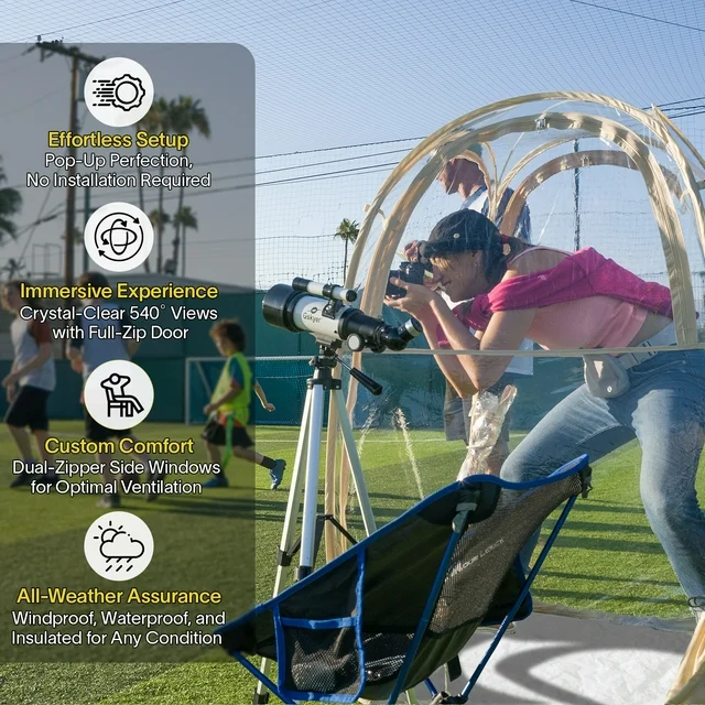 EighteenTek Sports Tent Weather Proof Pod Bubble Tent Outdoor Instant Pop Up Shelter Clear Large Specious 1 Person Lightweight Portable 40"x40"x62"H