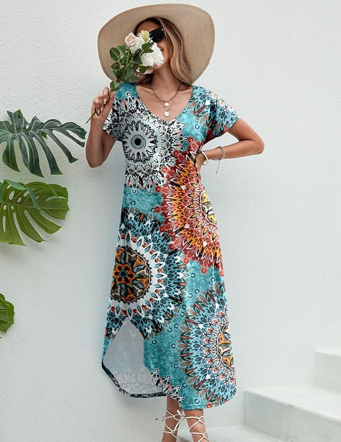 • Features: Womens nightshirts featuring casual loose A-line design, sexy v neck sleepshirt, short sleeve sleeping wear and long lounger gowns with two big side pockets and side split hem