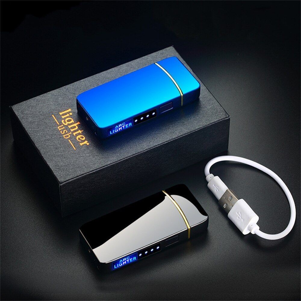 Electric Dual Arc Metal Cigarette Lighter USB Rechargeable Plasma Windproof
