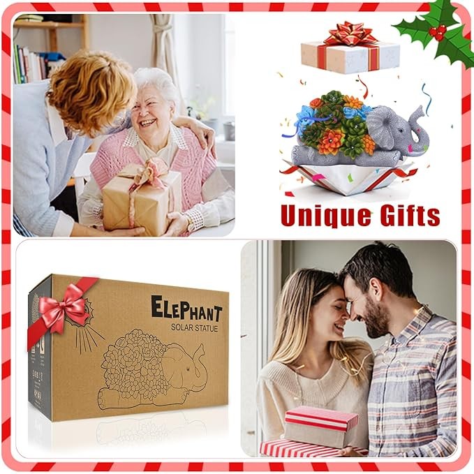 【Beautiful Home and Garden Decoration】The solar resin elephant statues with succulent suitable for garden decor/home decor/house decor/lawn ornaments/front porch decor/yard decorations outdoor/back decor/backyard decor.