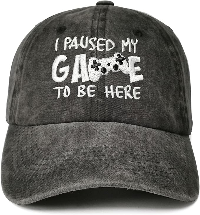 • 【Find Your Style】: Show off your gaming passion with our 'I Paused My Game to Be Here' dad hats! This washed black soft golf sun hat features a funny saying 'I Paused My Game to Be Here' embroidered on the front. This baseball cap is perfect for the avid gamer who just can't put down their controller, and it makes a great Christmas or birthday gift for your son, daughter, boyfriend, girlfriend, sister, or brother.