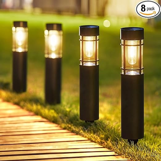 • 【2024 Newest Solar Lights Outdoor】 Our outdoor solar lights for outside feature an upgraded high-efficiency filament LED and high transmittance lampshade, making the solar pathway lights outdoor brighter than ordinary solar garden lights outdoor, creating a cozy ambiance in your outdoor space. The eye-catching appearance design of pathway lights solar powered can perfectly match any scene and enhances your yard's class and home value. Make your garden elegance and sophistication with these exceptional outdoor solar lights for yard.