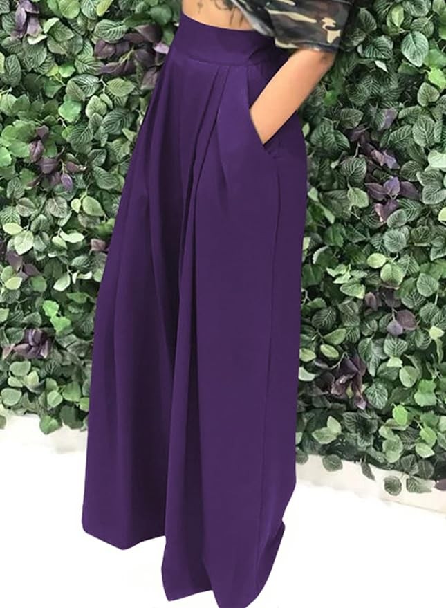 EQQZD Palazzo Pants for Women Flowy Wide Leg High Waisted Trousers Long Dressy Bottoms