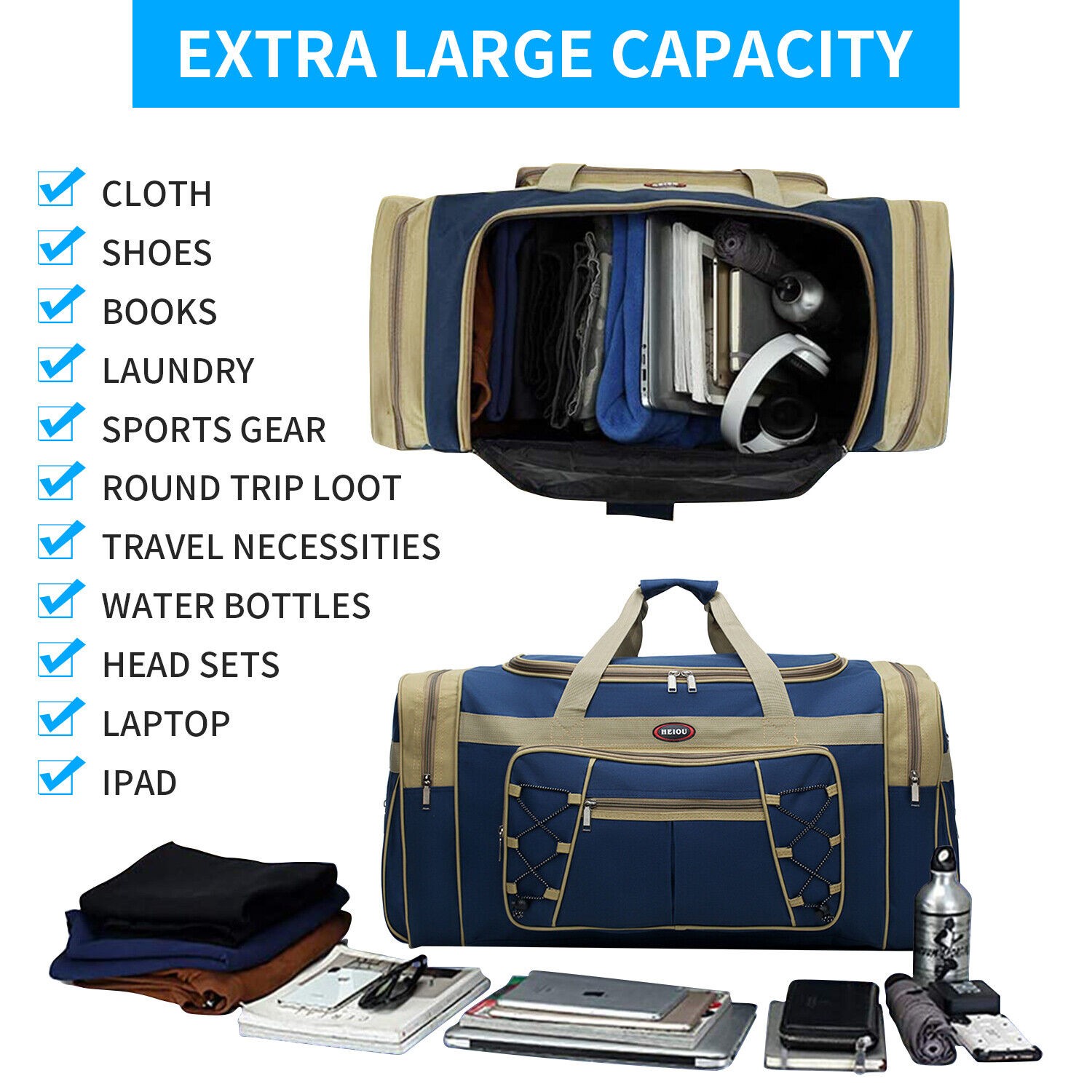 Extra Large Duffle Bag Lightweight, 72L Travel Duffle Bag Foldable for Men Women