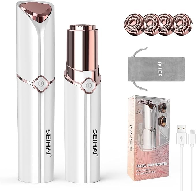 Facial Hair Removal for Women, SEIHAI Hair Removal Device(Luxury), Face Razors for Women, Personal Care Products/Facial Hair Remover for Face, Lip, Chin, Included 4 x Replacement Heads