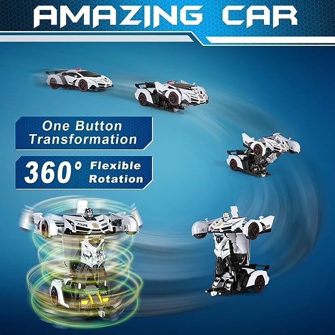 • Two In One Toy Cars: Combined with car and robot, this RC transformer car could transform automatically from car to robot back and forth fluently when you press the button on the remote control. Keep your child entertained with the toy that never gets old - cruise down the streets in a drifting sports car or man the battlefield with an intergalactic robot.