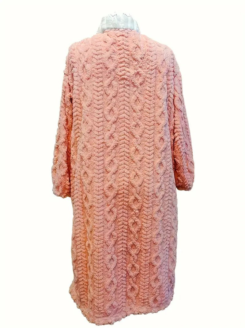 Flower Decor Fuzzy Night Robe, Cute Long Sleeve V Neck Robe With Pockets, Women's Sleepwear