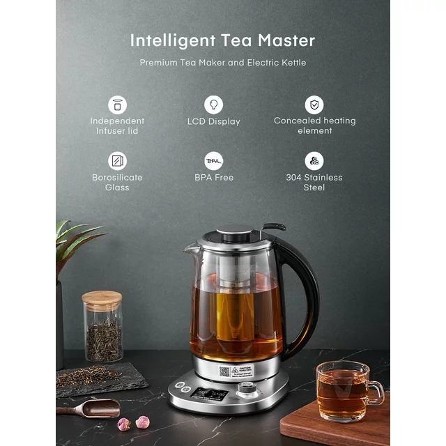 With Digital Touch Display has accurate digital temperature control for optimal brewing of various beverages. Boils water faster than the microwave or the stovetop methods, so you spend less time waiting for your delicious hot beverages. Great to make the perfect temperature water for hot tea, coffee, instant oatmeal, baby bottles, and more; has an option to keep water at the desired temperature for up to 120 minutes. Bonus tea infuser is included with purchase for brewing your favorite loose-leaf or bagged teas directly in the stain-resistant borosilicate glass kettle. The keep-warm function lets you keep your tea or water hot, so you can have another cup without having to re-boil!