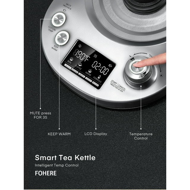 • 9 PRESETS FOR DIFFERENT TEAS: Different teas varietals require exact water temperatures and controlled brew times to allow their unique flavors and aromas to develop during brewing. The electric tea kettle with temperature control comes with 9 preset temperature settings for Formula, Warm, Delicate, Green, White, Oolong, Coffee, Black, and Boil as well as coffee.