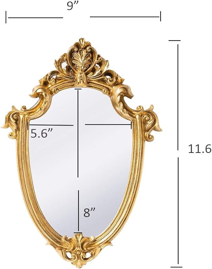 Funerom Vintage 11.6 x 9 Inch Decorative Wall Mirror Gold Shield Shape