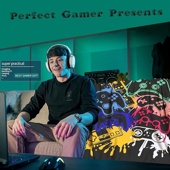 • 【Premium Fabric:】Gamer Blanket ,Adopting the precision and meticulous workmanship--- Intensive fluff, true touch, fine stitches and fine seams at the edges. Our blankets are made of 100% high-quality polyester which is a high-density material.It will keep your skin more breathable, warm.this gamer blanket throw is definitely your first choice.