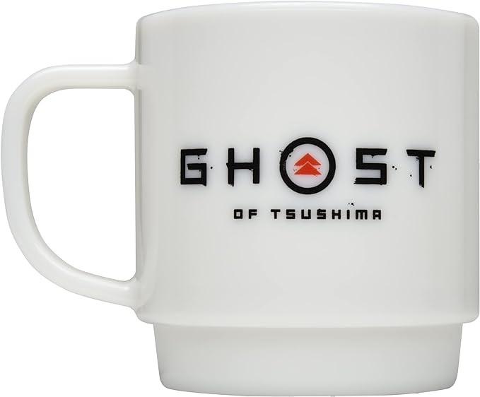 Two types of mugs featuring the family crest of the Sayai family crest of the main character of Ghost of Tsushima, and a monogrammed design of the family crest of the Sayai family and Shimura family, etc