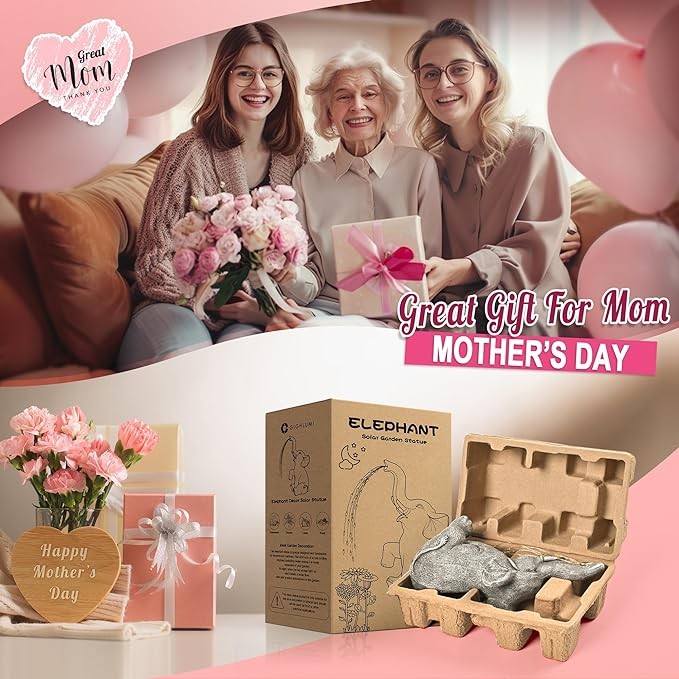 • 【Ideal gift】 Elephants are often seen as a symbol of friendliness, love, wisdom, and strength. This lovely elephant statue would be great gifts for moms, women, family members, and friends, or be sent as Christmas gifts, Mother's Day gift, Birthday gifts, Thanksgiving, housewarming, etc.