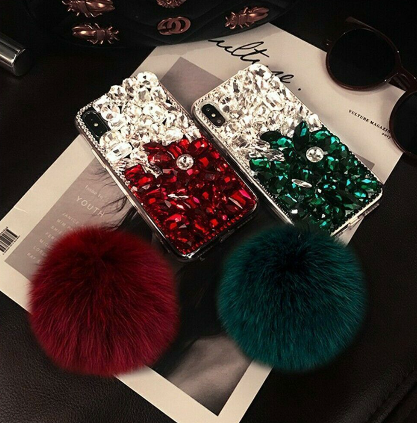 Glitter Bling Diamond Case & Plush Ball For iPhone 12 14 Pro Max 13 11 XS XR 7 8