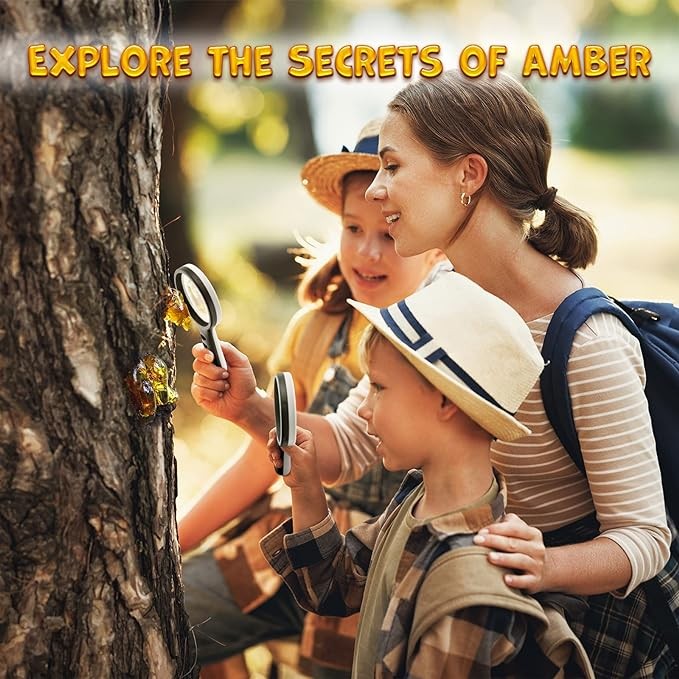 ? Complete Fun Activity For Kids : This digging set comes with everything needed to keep kids digging and learning for hours, including a digging brick filled with amber, chisel, brush, hammer, magnifying glass, cards, storage bag and other tools. Unlike other children's toys, the GobiDex amber digging set combines educational value with fun!