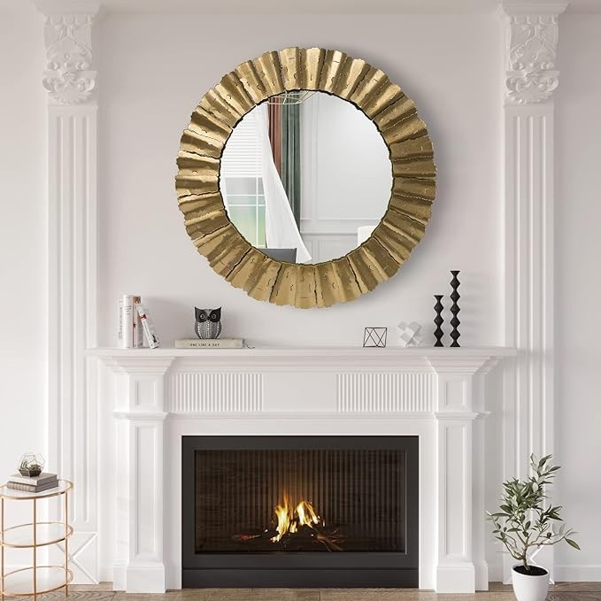 Gold Mirror, Handcrafted Round Wall Mirrors Decorative Modern Wall-Mounted Mirrors for Living Room, Entryway, Foyer, Hallway, Bedroom, 32IN Large Wall Mirror