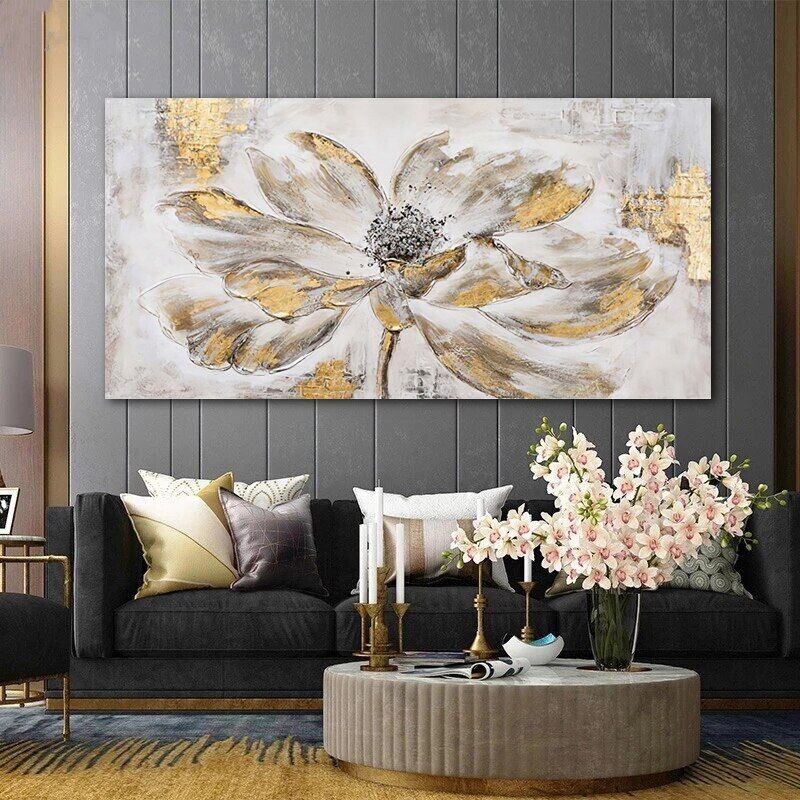 Golden Flower Abstract Canvas Painting Canvas Wall Art Home Decor Posters Prints