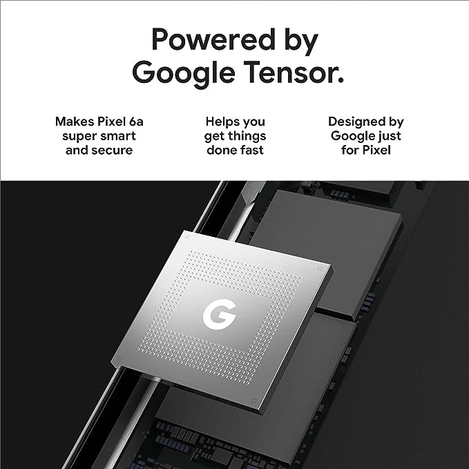• Google Pixel 6a adapts to you; it’s super fast and secure and powered by Google Tensor, the first chip designed by Google just for Pixel.Form_factor : Bar.Other camera description:Front,Rear.Aspect ratio : 20:9. Up to 72-hour battery life with Extreme Battery Saver. Bluetooth Version 5.2 with dual antennas for enhanced quality and connection.