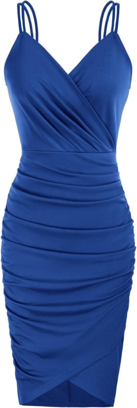 • FEATURES: Spaghetti straps design, elastic shoulder straps, surplice V-Neck with hidden button, ruched front, irregular wrap hem, hidden zipper in the back, hits at mid-thigh, slim fit hips-wrapped silhouette, sexy bodycon party midi dress for women.