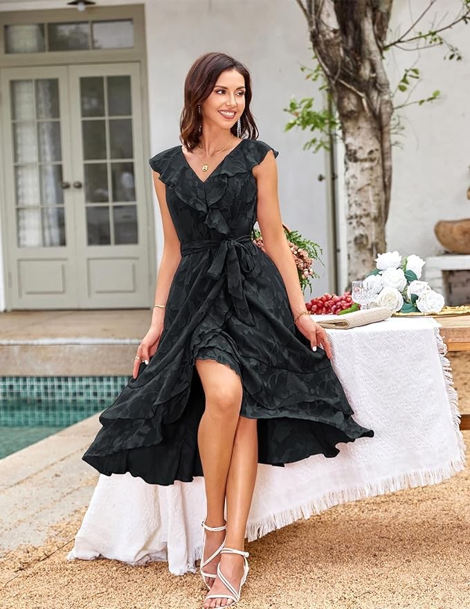 • CHIC RUFFLE DRESS FOR YOU! Wedding Guest Dresses For Women / Long Dress For Women / Ruffle Wrap Dresses / Women Casual Dresses / Sleeveless Dress For Women / Elastic Empire Waist With Belt / Flared A-Line Dresses / Women Beach Dresses / Flowy V Neck Dress For Women.