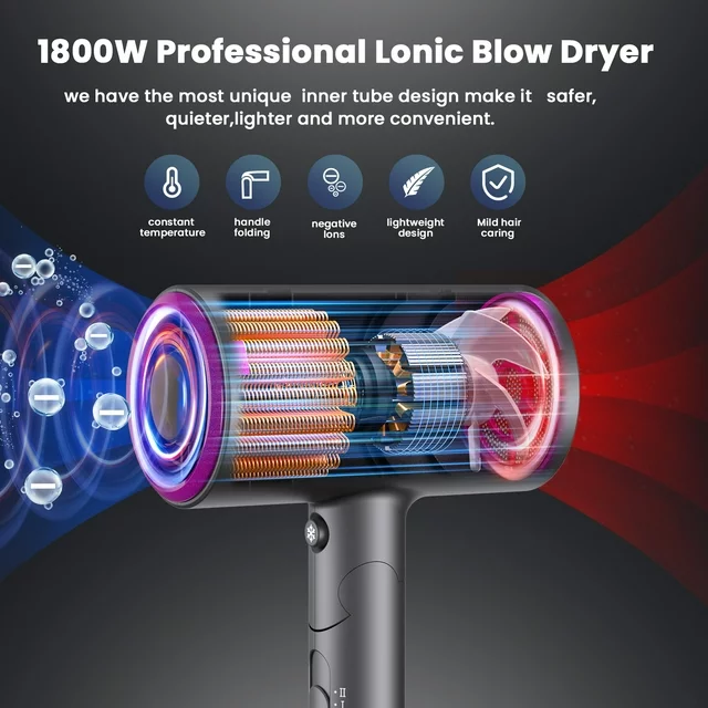 • Ions & Bioceramic Hair Care -- Adopts ion and bio-ceramic technology, our hair blower will release millions of moisturizing negative ions combined with far-infrared heat to reduce static and make hair soft and smooth. With constant temperature protection function, intelligent temperature control to prevent overheating damage, good for hair care.