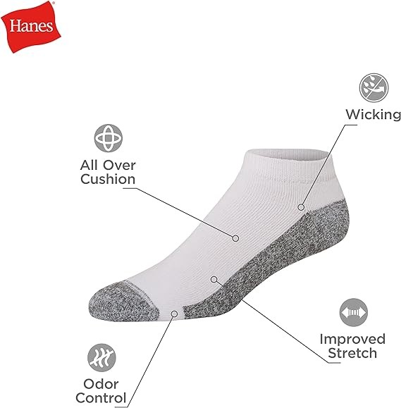 Hanes Men's Max Cushion Low Cut Socks, 6 and 8 Packs