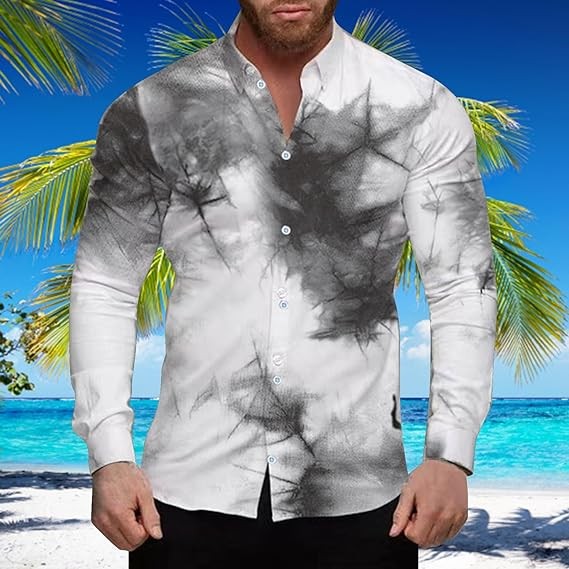 Hawaiian Shirts for Men Long Sleeve Funny Summer Tshirt Relaxed-Fit Loose Button Down Breathable Soft Ocean Pullover