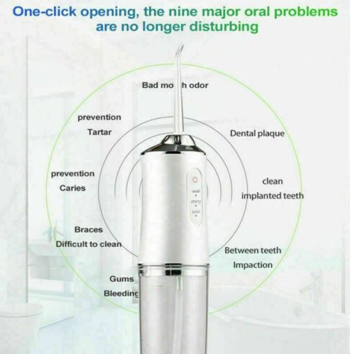 Health Cordless Dental Water Flosser Oral Irrigator Teeth Cleaner+ 4 Jet Tips