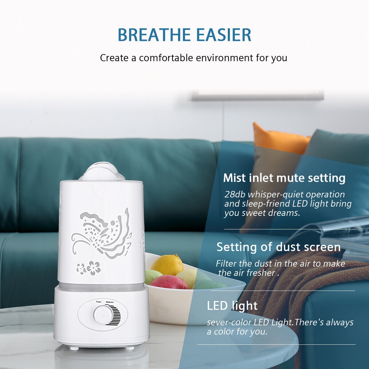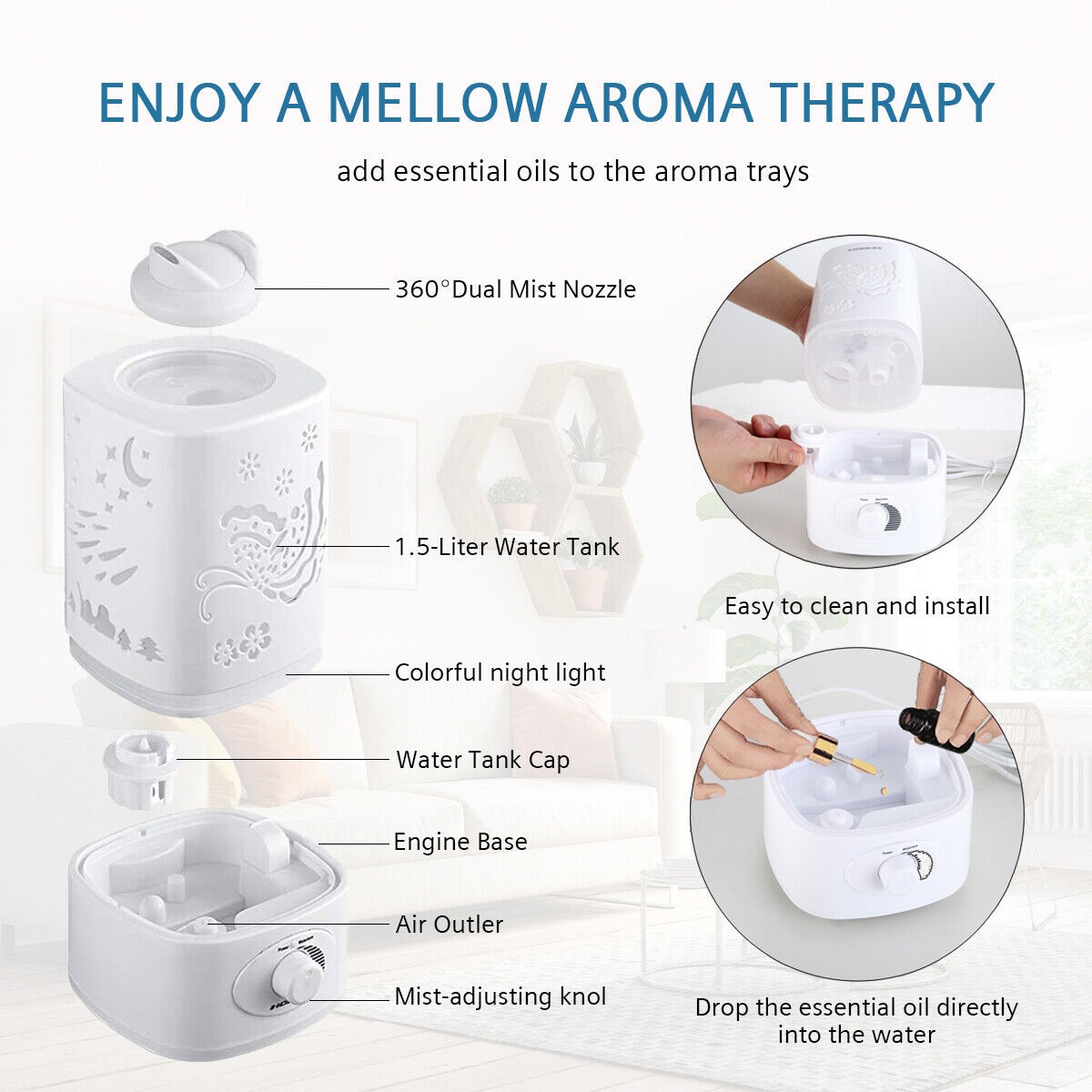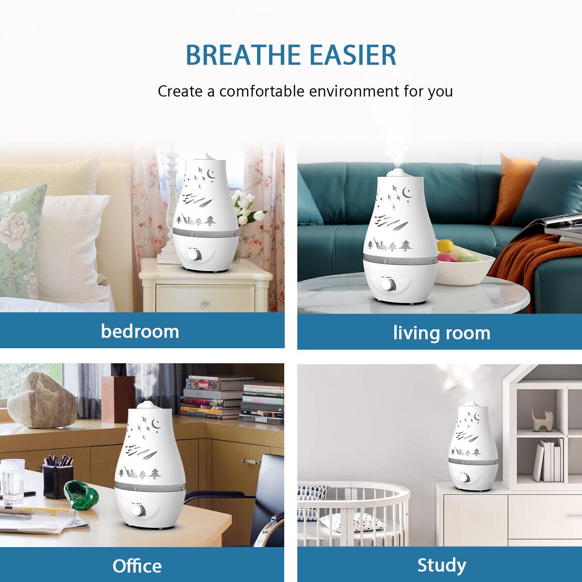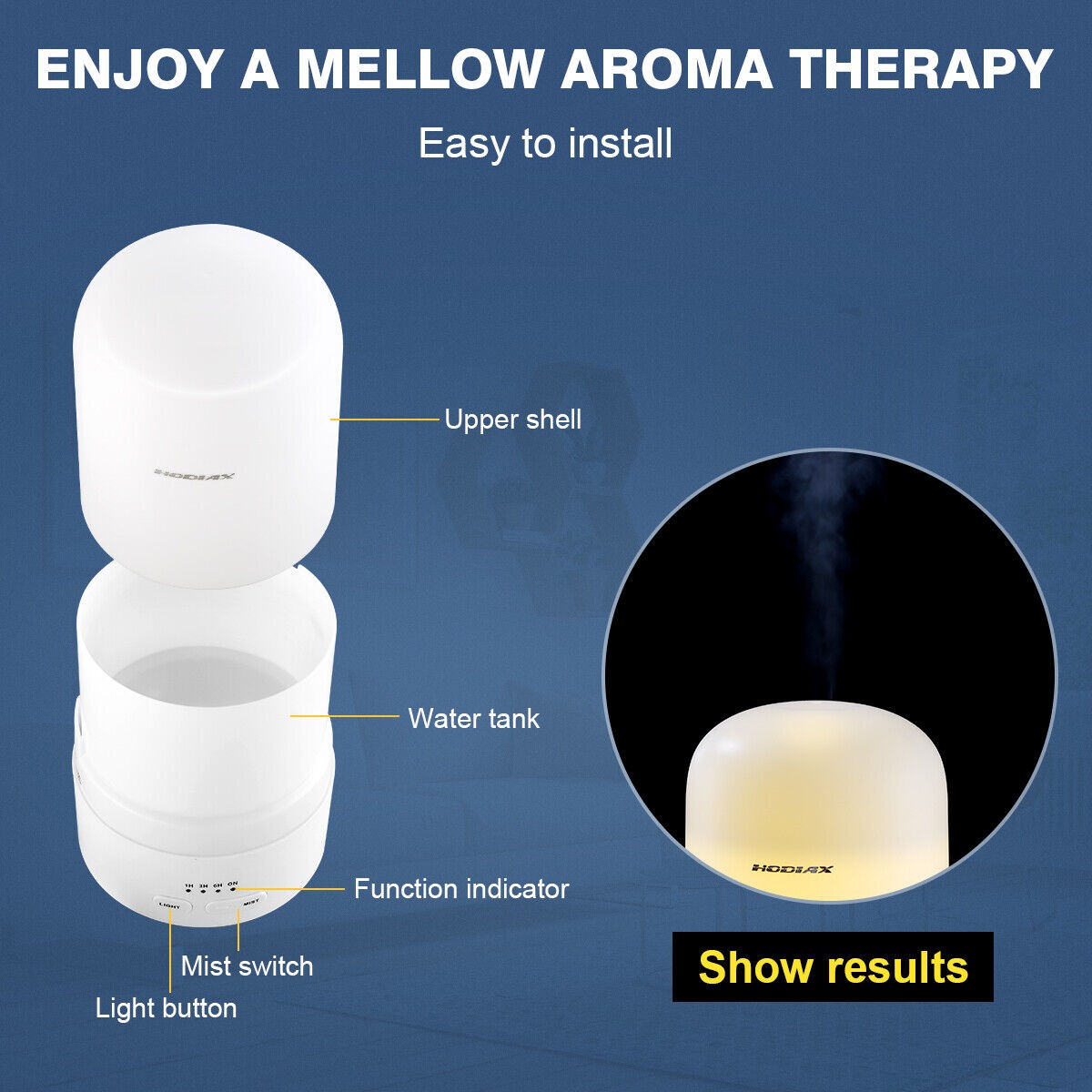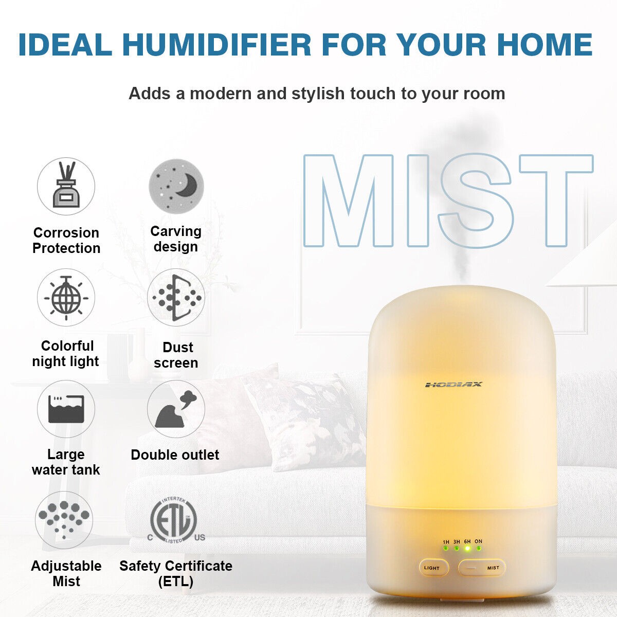 Hodiax Quiet Ultrasonic Humidifier 2-in-1 Diffuser Cool Mist Maker Whole House