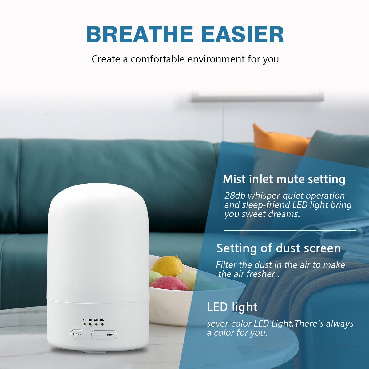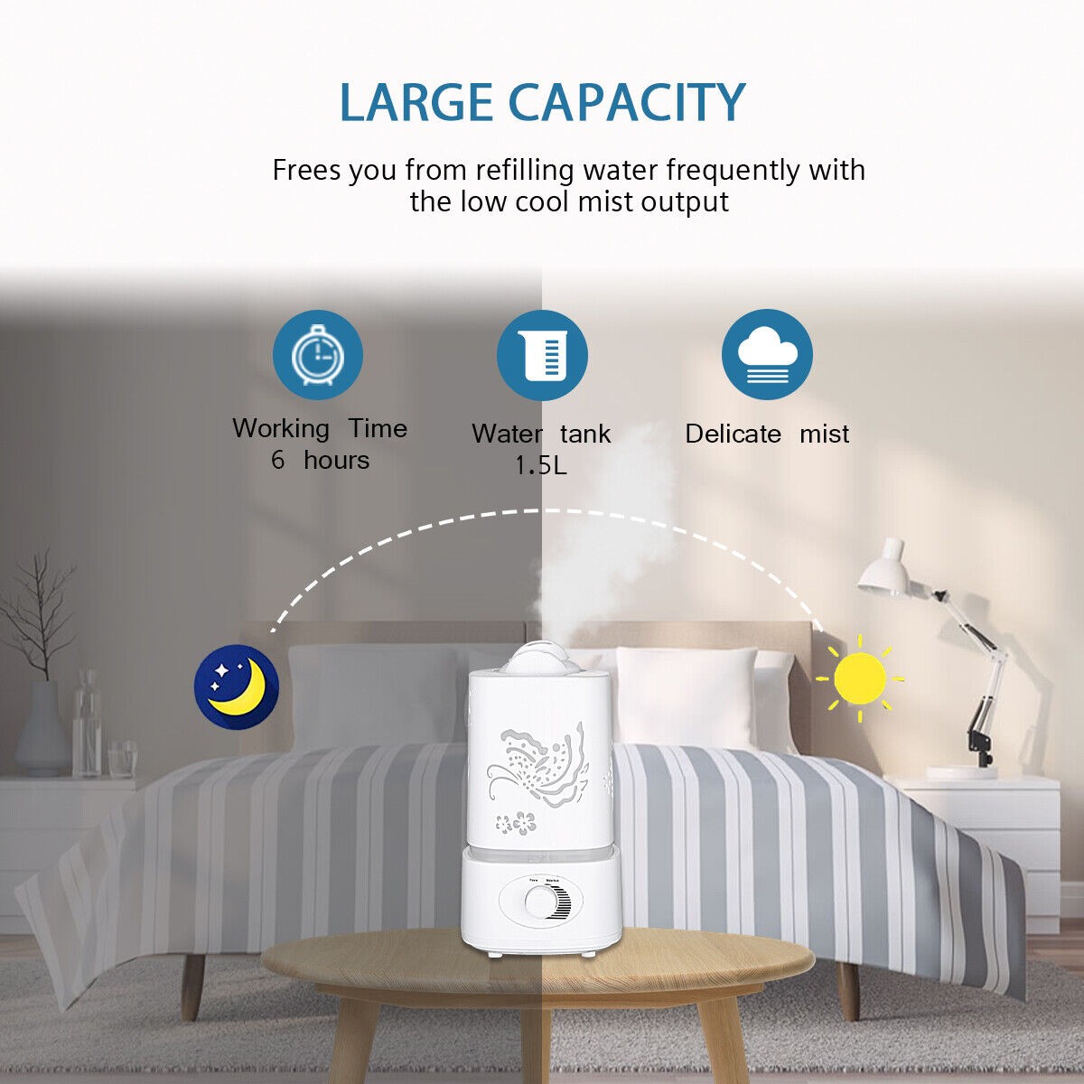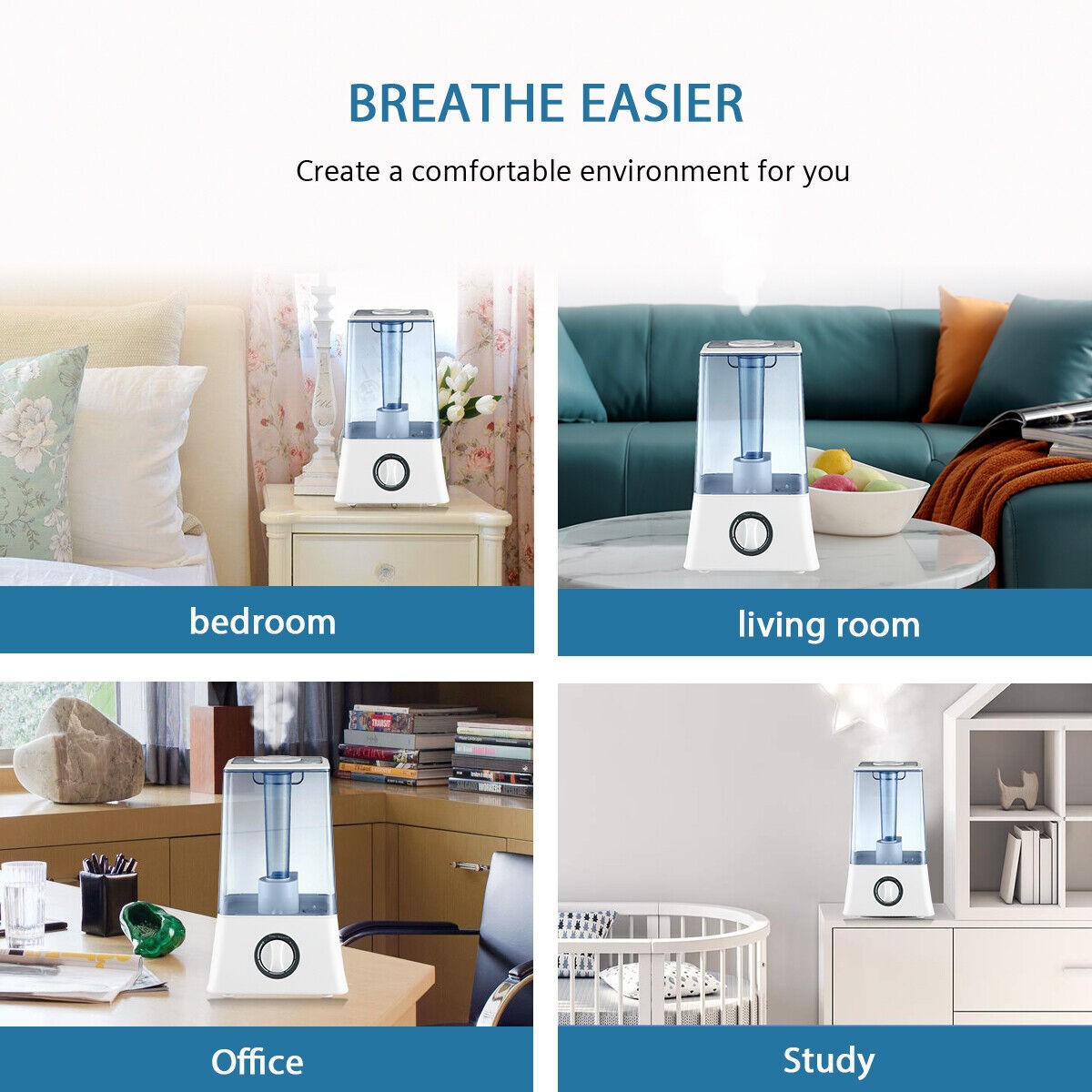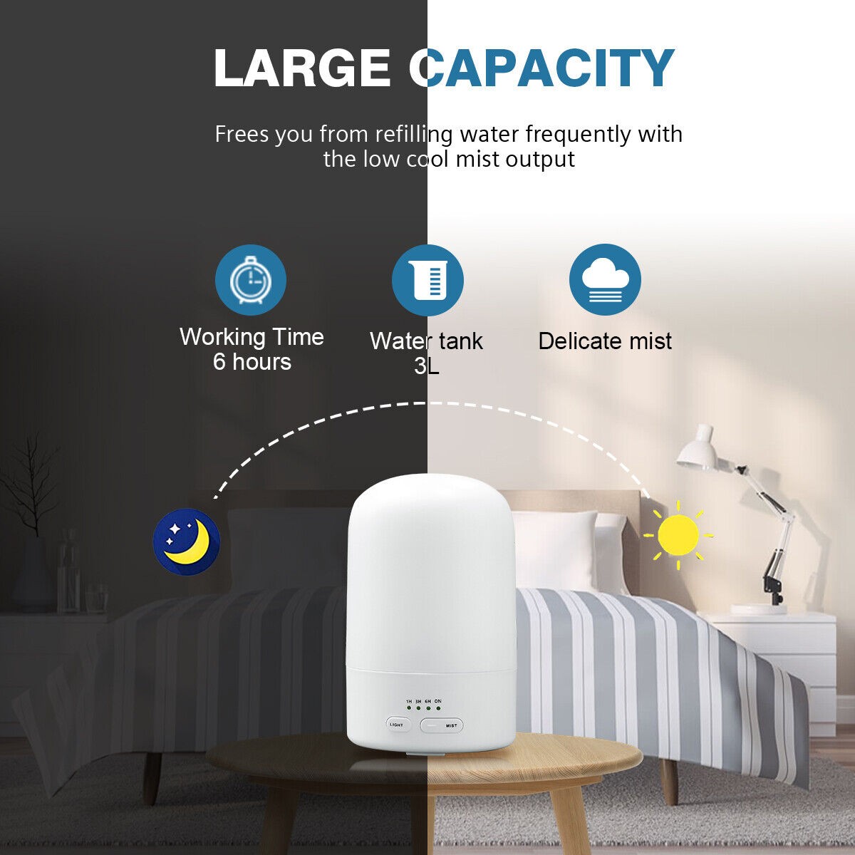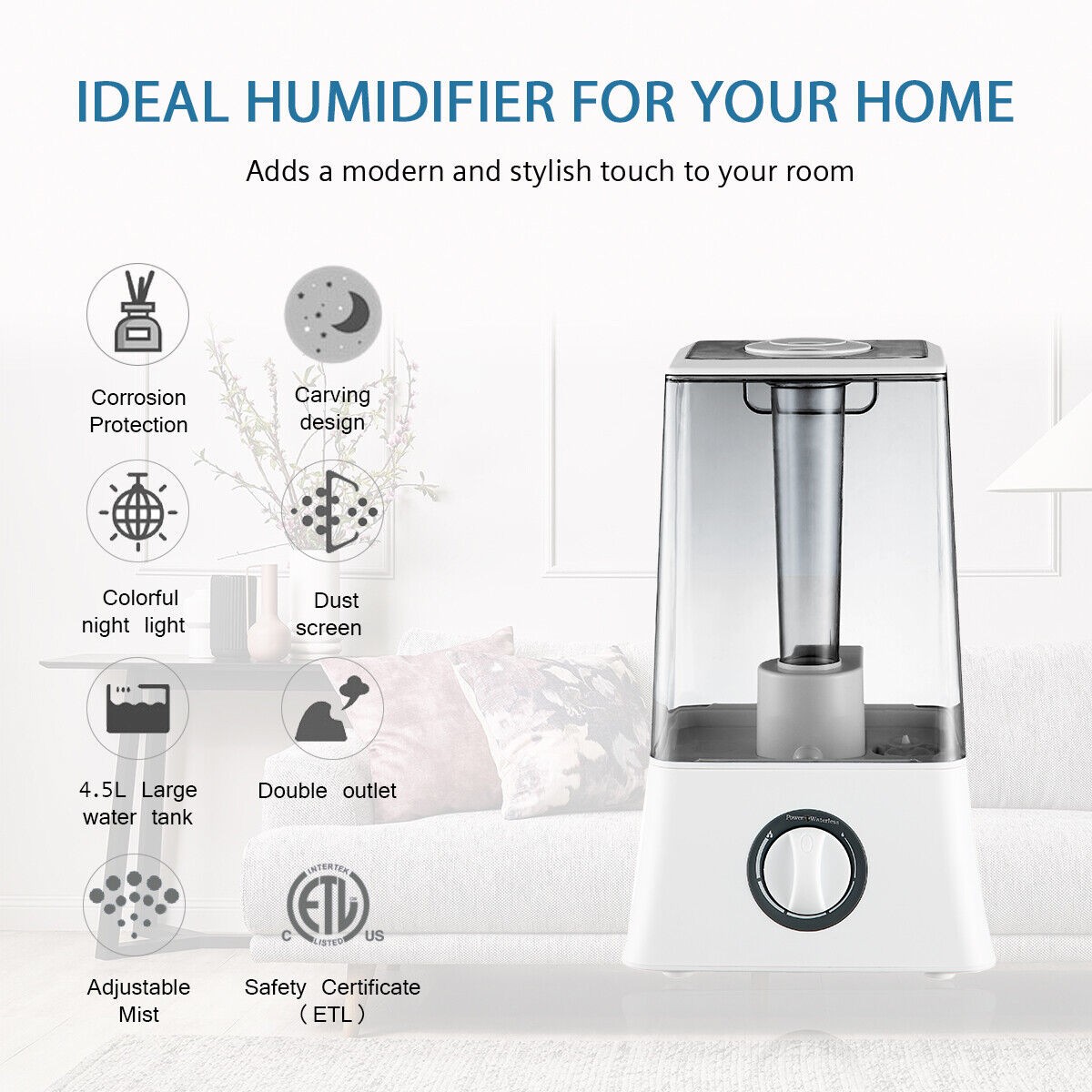 Hodiax Quiet Ultrasonic Humidifier 2-in-1 Diffuser Cool Mist Maker Whole House