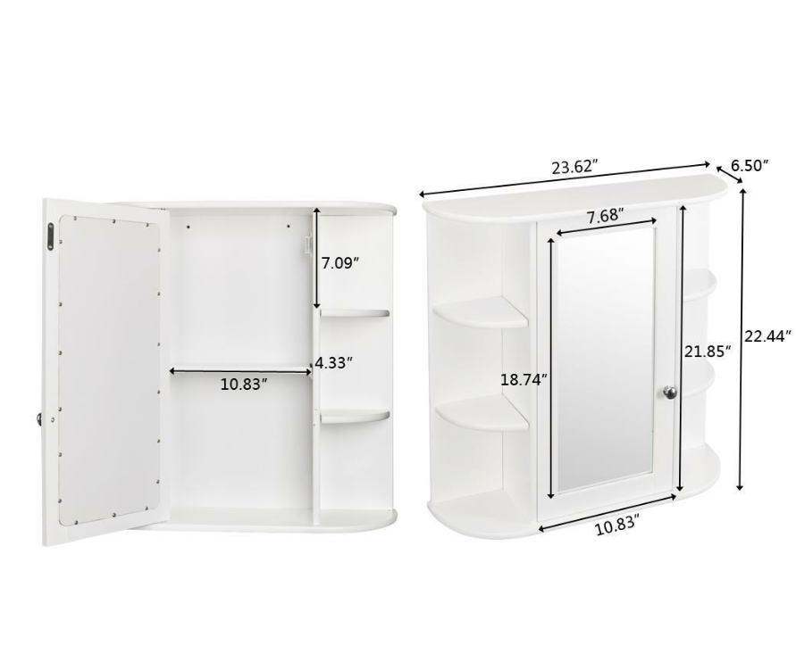 Multi-function Use:The bathroom wall cabinet is ideal for bathroom, bedroom, living room or kitchen. It features enclosed shelf with a mirror door, the mirror door can be opened, there is a lot of space for you to store items. And It also has two open shelves to place towels, soap, tissues and other decorative items. In addition you can also put some green small plants on the open shelves to make your item neat and beautiful