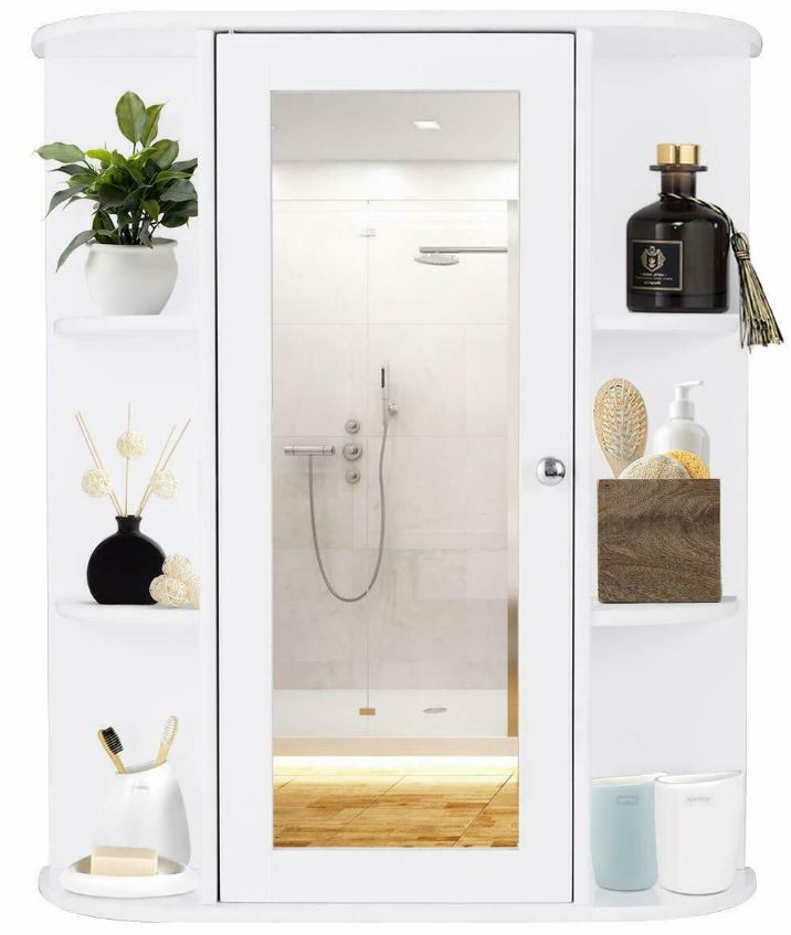 Home Bathroom Wall Mount Cabinet Storage Shelf Over Toilet w/ Mirror Door