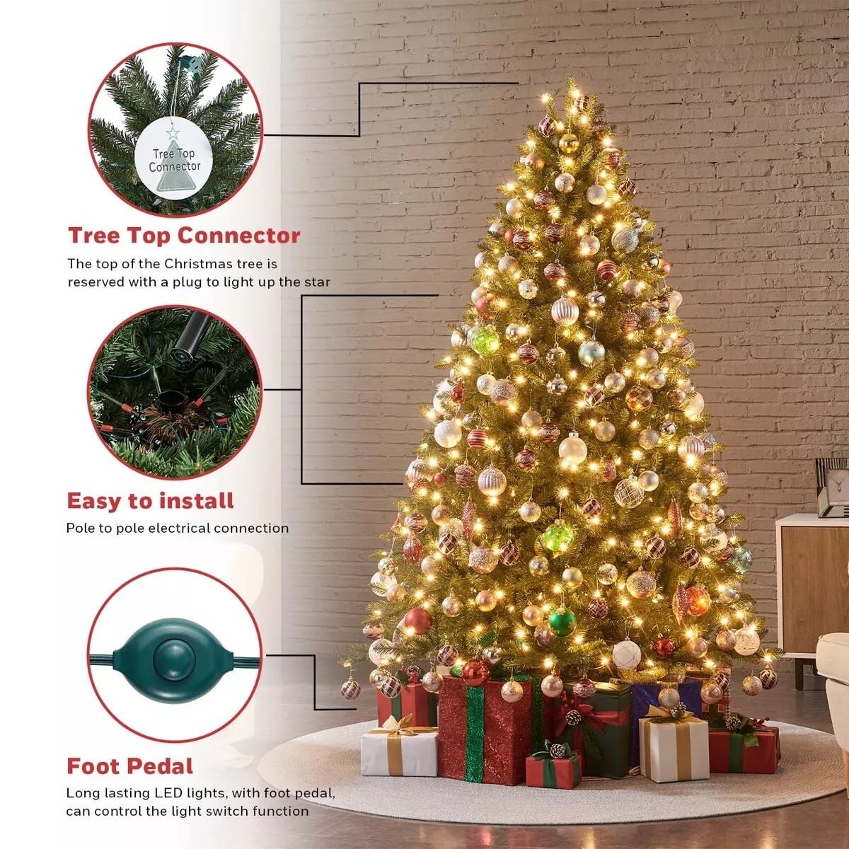 The Eagle Peak Pine Pre-Lit Christmas Tree stands 6.5 ft. tall and features a 49 in. base diameter. Assembling a holiday tree has never been easier. All Honeywell Christmas Trees use a patented One Plug Quick Connect® feature that completely removes the hassle of connecting multiple light strings. You’ll no longer have to wrestle with countless light strings to see your tree shine brilliantly. Simply plug in and use the included on/off foot pedal to control the light switch function. Honeywell Christmas Trees are also built with a folding base. This makes the setup and storage process a relatively effortless one.