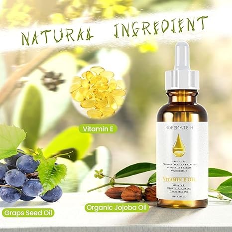 HOPEMATE H Vitamin E Oil - Anti Aging, Reduce Wrinkles and Fine Lines for Moisturized & Youthful Skin - Pure & Natural Vitamin E Serum for Face, Hair, Nails (1 oz)