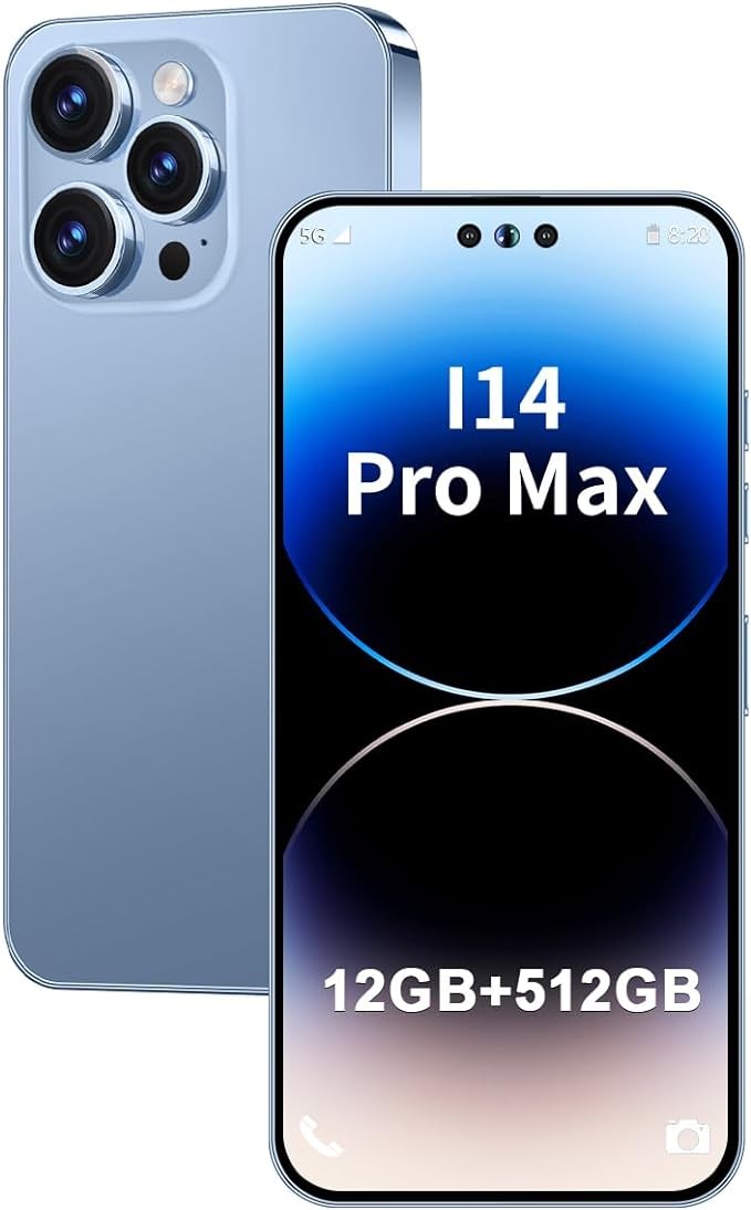 I14 ProMax Unlocked Android Phone 8-core Smartphone 12GB+512GB Cell Phone 24MP+50MP Camera Pixels 6800mAh Battery for Extended Standby 6.7inch HD Screen Unlocked Phone 5G Dual SIM Capability (Blue.)