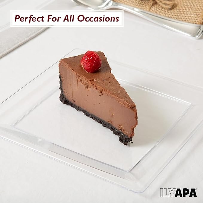 • DURABLE AND ELEGANT - Ilyapa's premium and crystal clear plastic plates 6 inch have a solid, quality feel, and stand up to the needs of your party or gathering. The best part is, once your event is over, there are no dishes to do! Simply wash and reuse these 6 inch clear plates, or dispose of them!