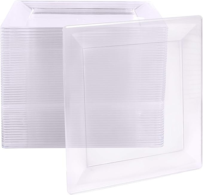 • RECYCLABLE OR REUSABLE - Dispose of these 100% recyclable, hard clear plastic plates worry-free after your party, or simply wash and stack them for later events.