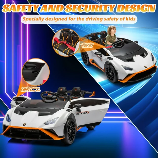 Lamborghini Huracan Sto 24V Kids Electric Ride-On Drift Car: Speeds 1.86-5.59 MPH, Ages 3-8, Foam Front Wheels, 360° Spin, LED Lights, Dynamic Music, Early Learning, USB Port, Drift Feature