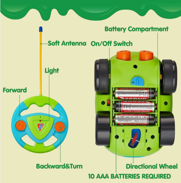 • Feature: RC Car Will Make Honking Sounds Radio Music and Flashing Headlights to help your children develop Sound Discrimination Ability. The ergonomic design is suitable for Baby Grasping, training their Finger Flexibility.