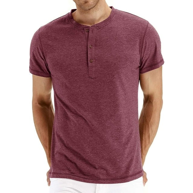 JWD Mens Henley Short Sleeve T-Shirt Cotton Casual Shirt Mens Shirts