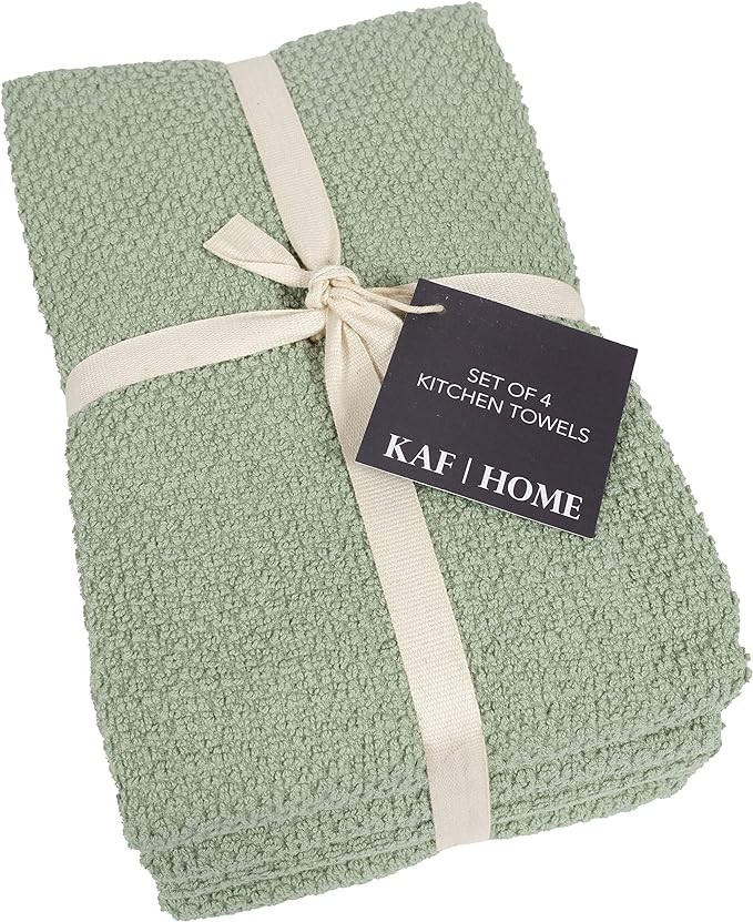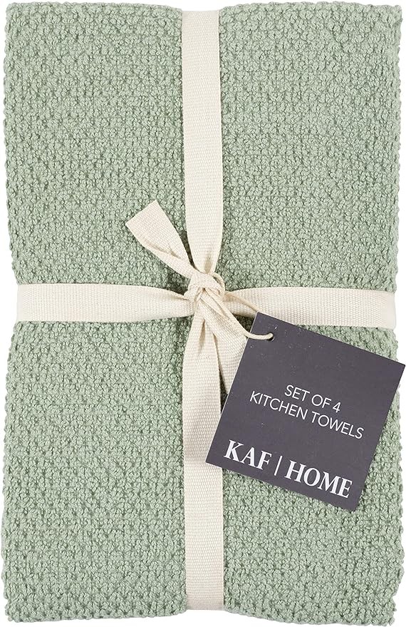 KAF Home Deluxe Popcorn Terry Kitchen Towels, Cotton Kitchen Dish Towels, Set of 4, French Green