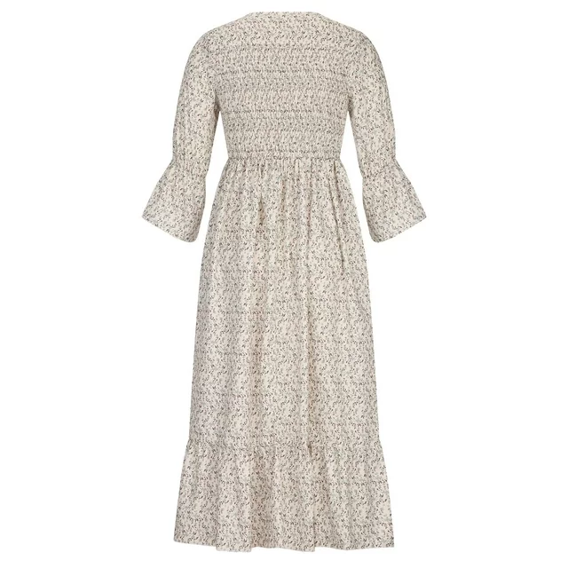 Kayannuo Short Sleeve Summer Dresses For Women 2023 Christmas Clearance Womens Dresses Fashion Women Chiffon Summer Casual Print V-Neck 3/4 Sleeve Long Dress White