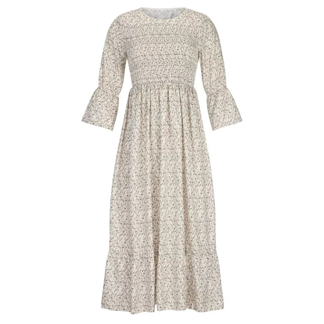 Kayannuo Short Sleeve Summer Dresses For Women 2023 Clearance Womens Dresses Fashion Women Chiffon Summer Casual Print V-Neck 3/4 Sleeve Long Dress White