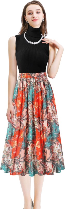 • Features: Comfortable Chiffon, High Waist, Pleated, Lining Layer, Midi or About Knee Length, A-Line skirt