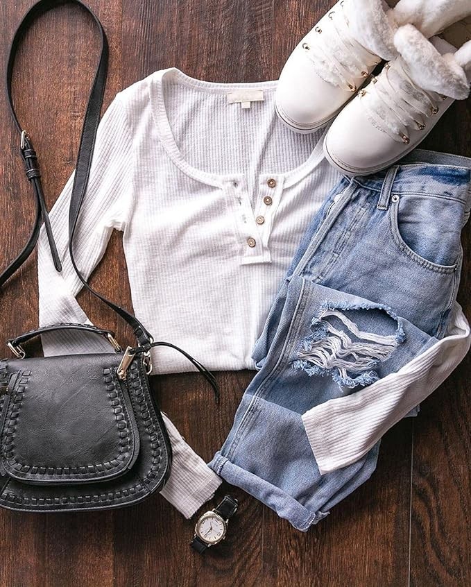 Kissfix Women's Long Sleeve Shirts Casual Fall Henley Top Button Down Blouses Basic Ribbed Knit T Shirts 2024