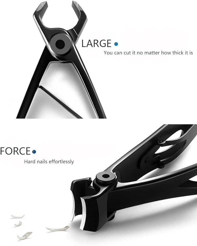 【WIDE JAW OPENING】Extra Large nail clippers for thick nails for seniors have 150 degree 17mm wide jaw opening,made with premium stainless steel is suitable for thick fingernails and toenails. It's sharpness and strength ensure durability, making it an ideal tool for thick nails in any grooming kit.